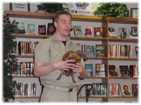 Tex, a Texas Box Turtle, meets an excited audience at the Red Bank Public Library in New Jersey! |